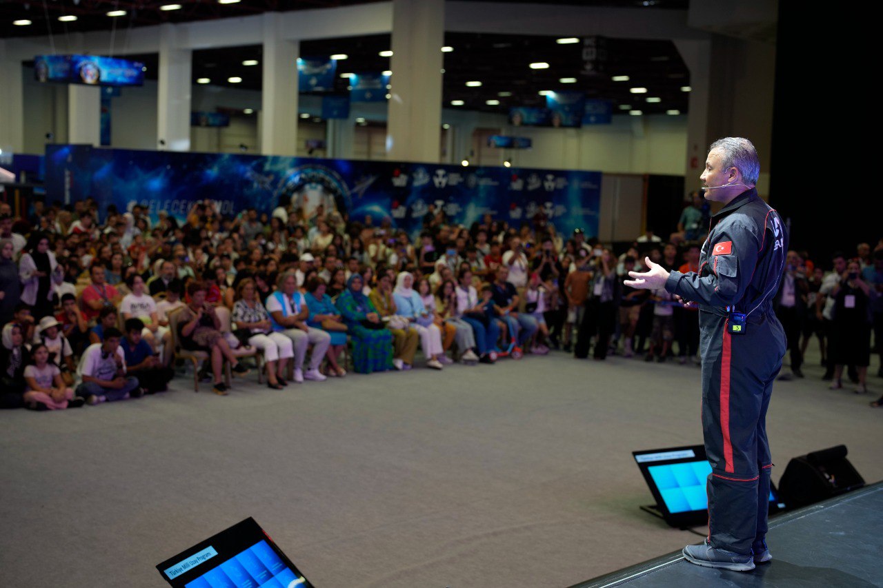 Türkiye’nin ilk astronotu Alper Gezeravcı TEKNOFEST Akdeniz kapsamında Antalya’da düzenlenen yarışma finallerinin ilk gününde ana sahneden ziyaretçiler ve gençlerle deneyimlerini paylaştı. Ana sahnedeki konuşmasında uzay yolculuğu deneyimini aktaran Gezeravcı konuşması sonrası çocuklar ve gençler ile fotoğraf çektirdi, soruları yanıtladı.