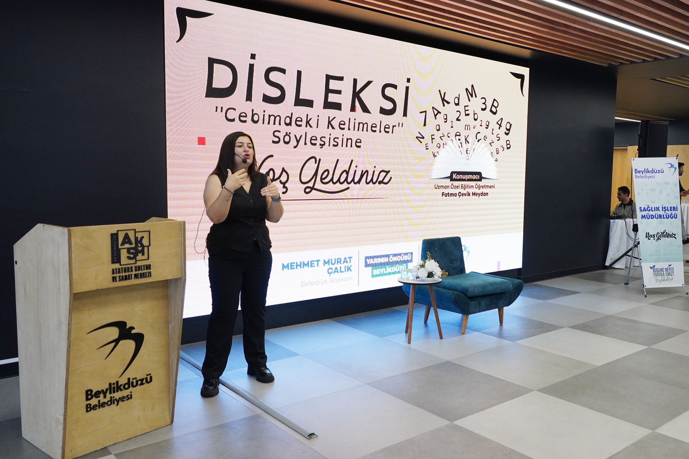 Beylikdüzü’nde, bir tür öğrenme bozukluğu olarak da bilinen disleksi ile ilgili farkındalık oluşturmak amacıyla “Disleksi Cebimdeki Kelimeler” başlıklı bir söyleşi düzenlendi. Beylikdüzü Belediyesi tarafından Dünya Disleksi Farkındalık Haftası kapsamında gerçekleştirilen söyleşi yoğun ilgi gördü. Beylikdüzü Atatürk Kültür ve Sanat Merkezi’nde yapılan söyleşiye konuşmacı olarak katılan Uzman Özel Eğitim Öğretmeni Fatma Çevik Meydan erken teşhisin önemine vurgu yaparak önemli bilgiler verdi.