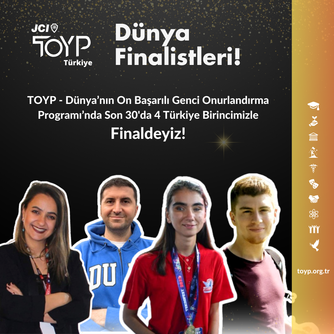 Junior Chamber International tarafından 1983 yılında beri organize edilen ve ülkelerinde dereceye giren gençlerin Dünya finaline gitmeye hak kazandığı TOYP – Dünya’nın On Başarılı Genci Onurlandırma Programı’nda 4 Türk genci, 200 genç arasından son 30’a kalarak önemli bir başarıya imza atmıştır.