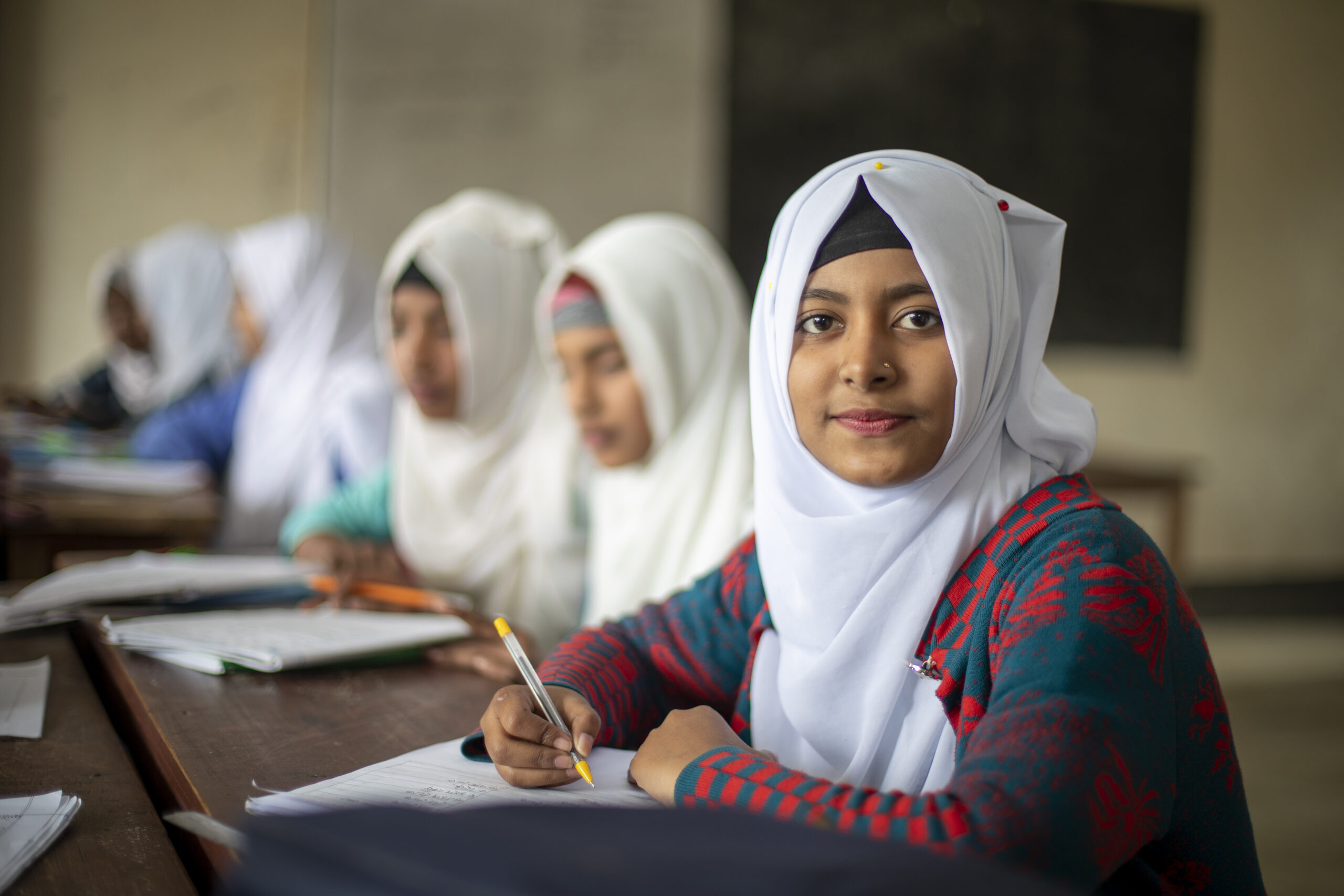 14-year-old Tabassum of Class VIII from Bania Bazar High School in Jamalpur, Mymensingh showing her interest in knowing about STEM (Science, Technology, Engineering and Maths) education on 24 January 2024.