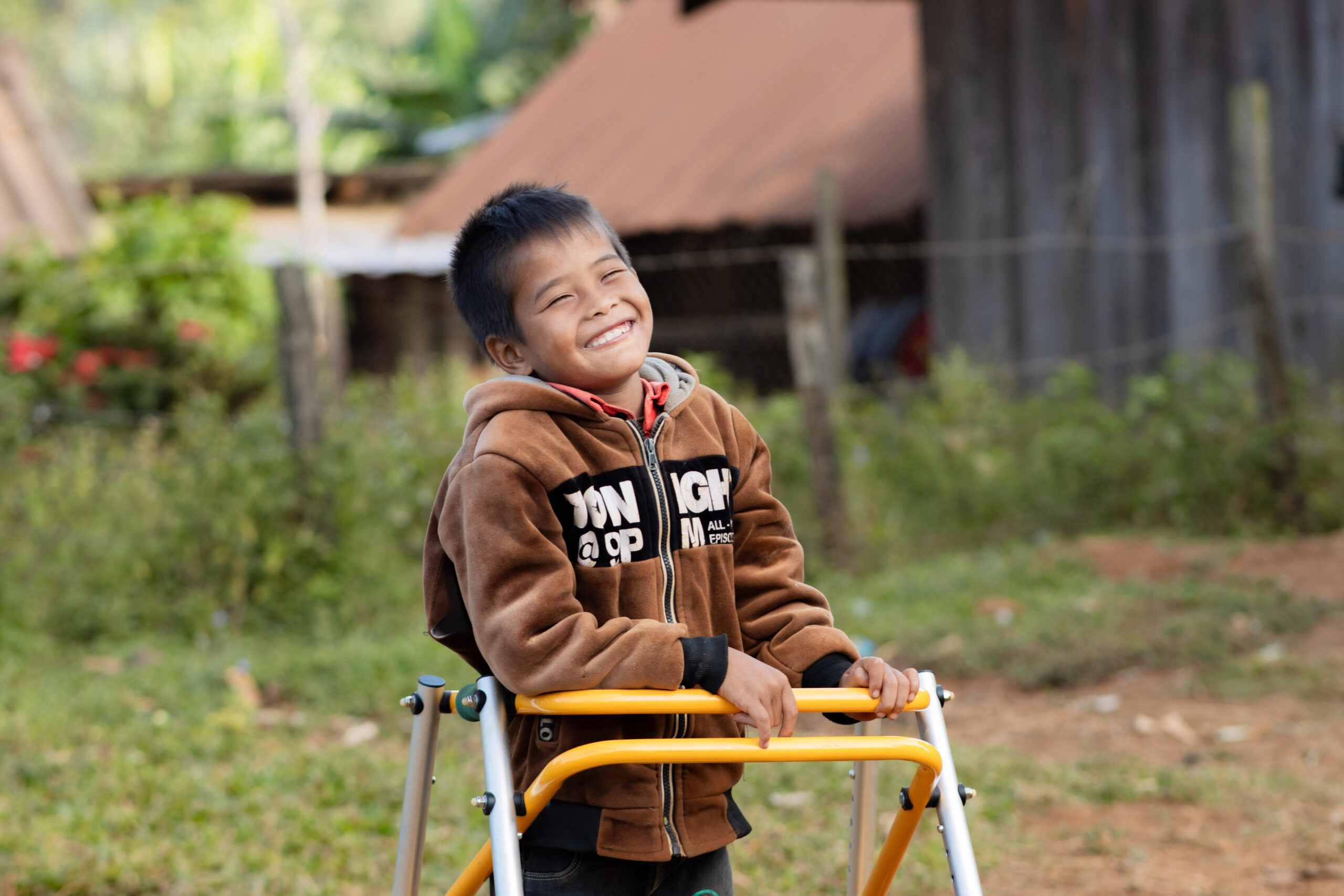 Lypor Vue is 10 years old and lives in Nakhampheang village, Paek District, Xiengkhouang Province. He has gotten assistive and accessibility devices for children with disabilities on November 25, 2024.