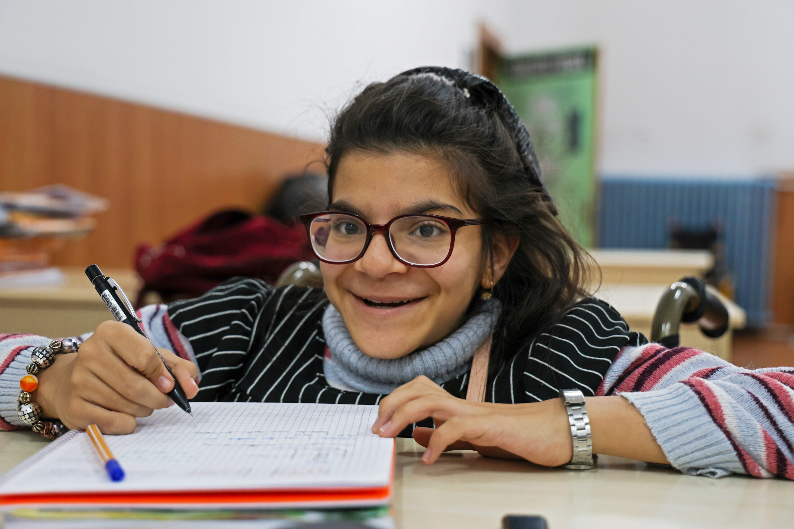 Bahar (15) in the chemistry class at her school, which provides vocational education for students with orthopedic disabilities and special education needs in Ankara, Türkiye.
