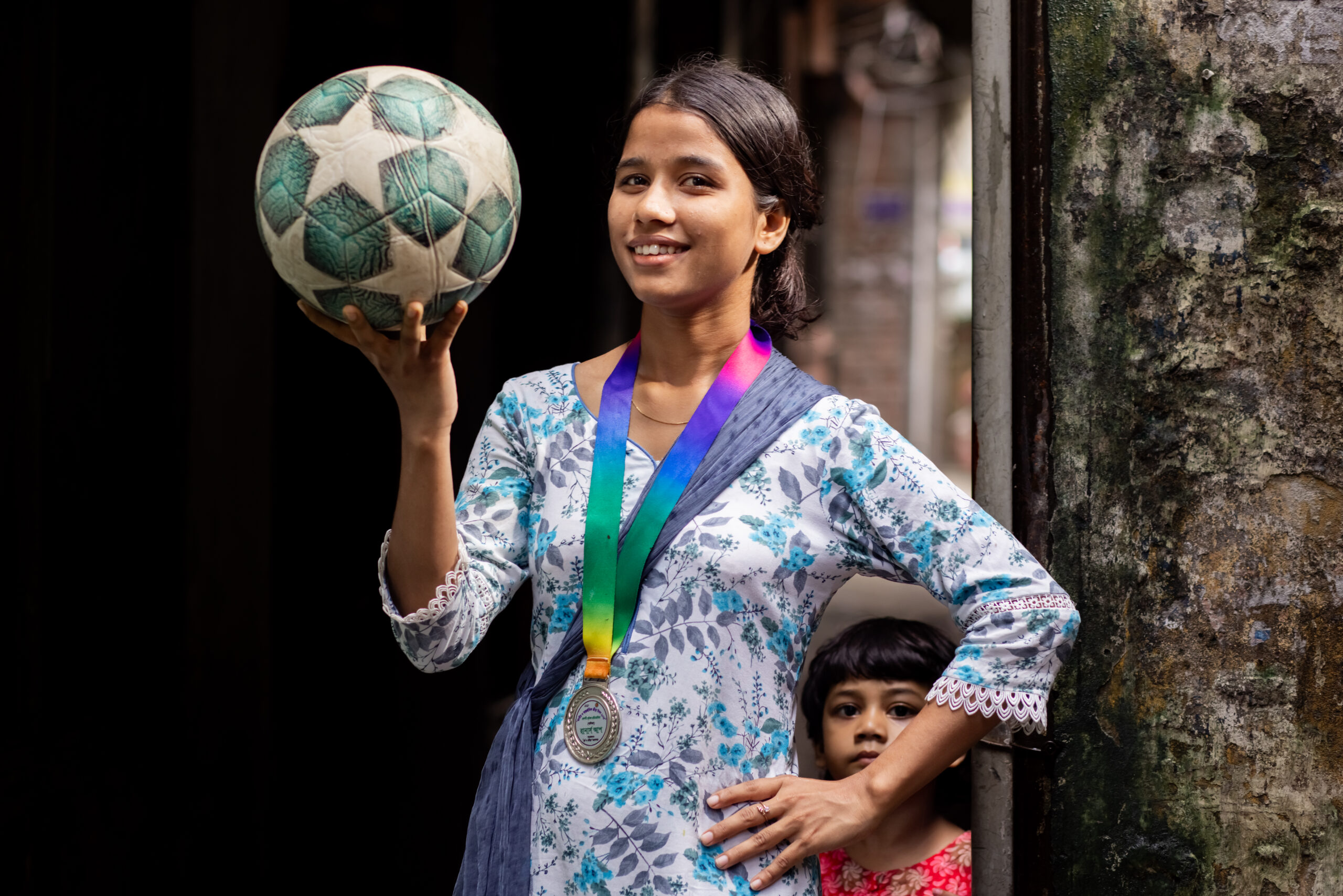 17-year-old Shymuli Akter is a participant of the S4D programme. She loves playing football and her favourite player is Lionel Messi.